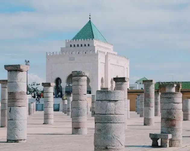 Depart for Rabat. Visit the Mohammed V Mausoleum, Hassan Tower, and the Royal Palace (exterior). Explore the Kasbah of the Udayas before continuing to Marrakech.